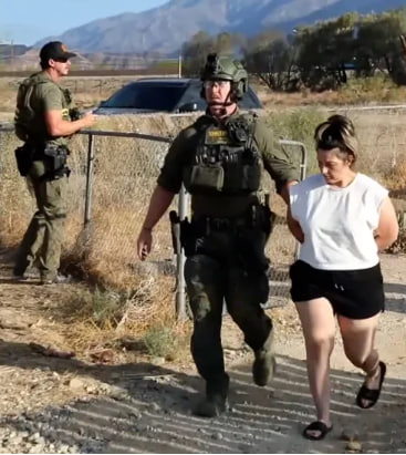 Video posted by the sheriff’s department shows armed deputies escorting the couple, hands cuffed behind their backs and wearing casual clothes, into police vehicles.